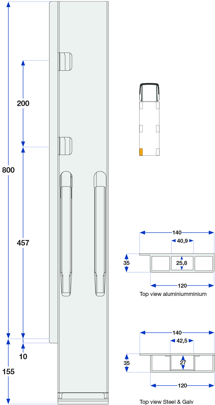 Bakstolpe 800mm venstre BBE 2-port