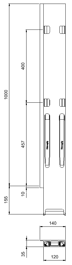 Bakstolpe 1000mm venstre BBD 2-port