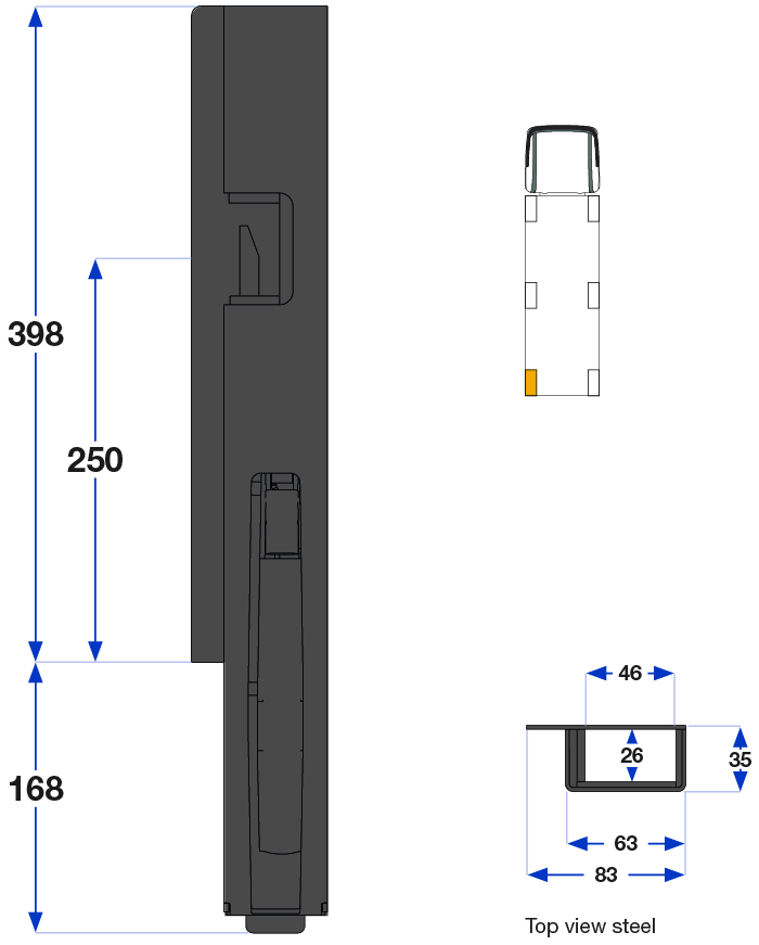 Bakstolpe 400mm venstre narrow 1-port