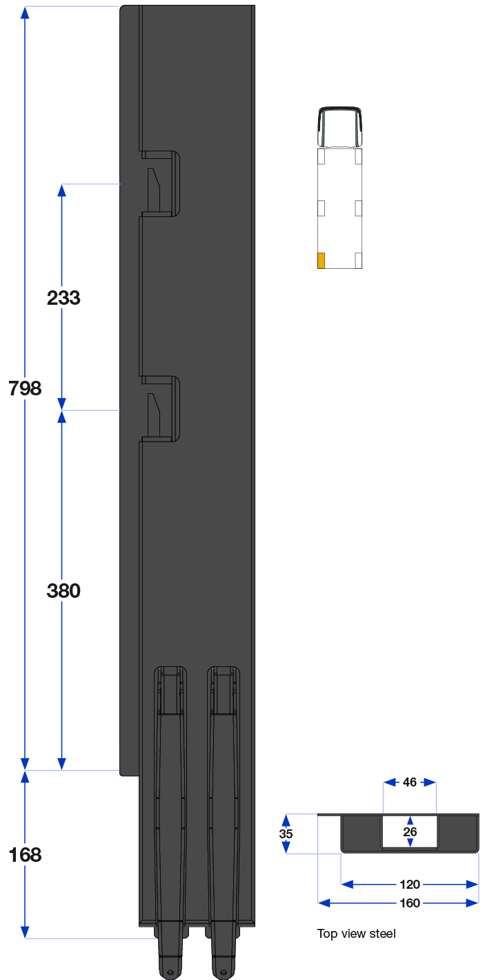 Bakstolpe 800mm venstre BBE 2-port