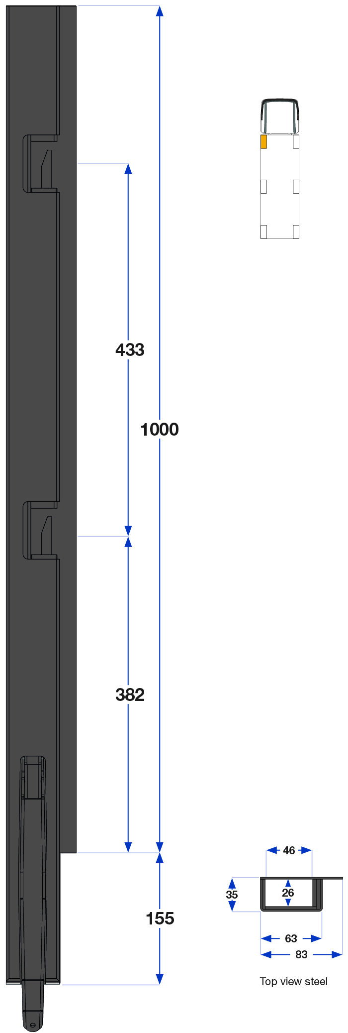 Forstolpe 1000mm venstre 1-port